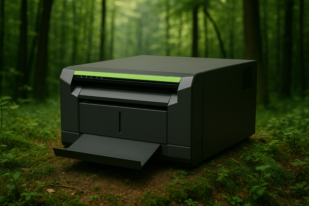 Die greenPRINT Fotobox verbindet Spaß mit Umweltbewusstsein. Durch die Verwendung bereits angebrochener Druckerrollen reduziert sie Abfall und schenkt Materialien ein zweites Leben – ohne Kompromisse bei der Druckqualität.